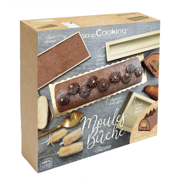 Ce coffret Scrappcooking complet vous permettra de réaliser votre bûche étape par étape en suivant la recette bûche de noël présente à l’intérieur et en utilisant les différents moules à bûche prévus à cet effet.