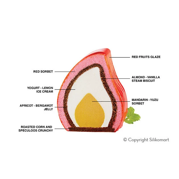 ĂtudiĂ© dans les moindres dĂ©tails, ce moule en silicone flamme vous offre la possibilitĂ© de rĂ©aliser facilement un entremets en forme de flamme “Candle In The Wind” avec un aspect penchĂ© si difficile Ă rĂ©aliser. ComposĂ© de 5 Ă©lĂ©ments (1 moule silicone flamme grand modĂšle + support, un moule insert silicone flamme moyen modĂšle + support et un moule silicone insert petit modĂšle) ce kit SilikoMart Professional complet vous permet de rĂ©aliser Ă la fois de simples entremets ou bien des entremets et des bĂ»ches beaucoup plus Ă©laborĂ©s dĂšs lors que vous utilisez les moules inserts en silicone flamme. Les supports en plastique conçus pour les deux plus grands moules silicone flamme vous apporteront stabilitĂ© dans votre travail.Â
