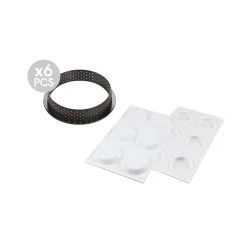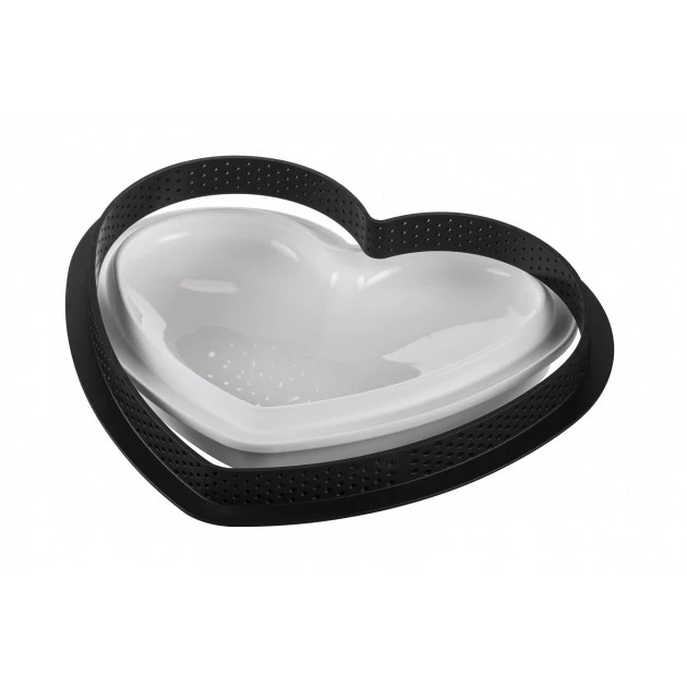 Réalisez une Tarte Coeur en toute simplicité grâce à ce Kit Moule Silicone et Cercle Perforé. Grâce au cercle perforé en forme de coeur, il vous sera facile de préparer un fond de tarte original. Ensuite, en vous munissant du Moule en Coeur Silicone, vous pourrez confectionner le dessus de votre tarte, avec une forme élégamment bombée.