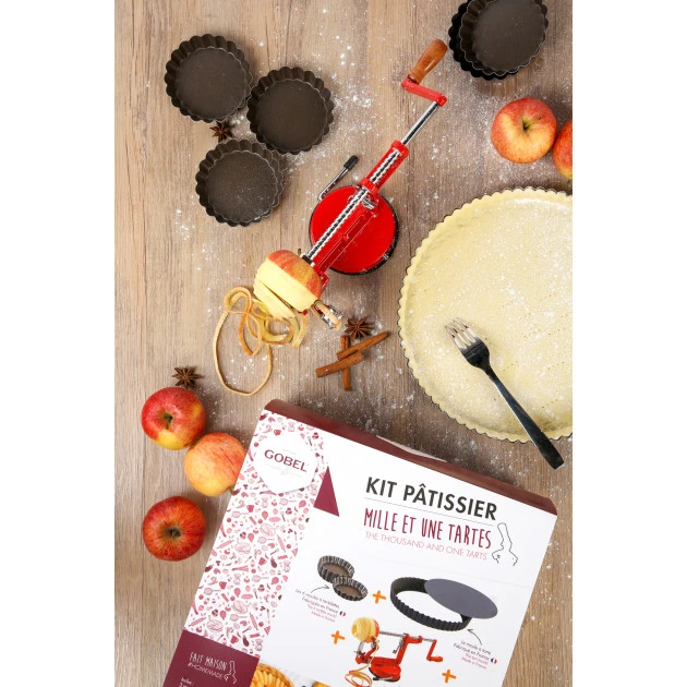 Confectionnez de belles tartes aux pommes en toute simplicité grâce au Kit Pâtisserie Mille et Une Tartes Gobel. Dans ce coffret cadeau, retrouvez 1 moule à tarte avec fond amovible, 6 moules à tartelettes cannelées ainsi qu’un pèle pommes.