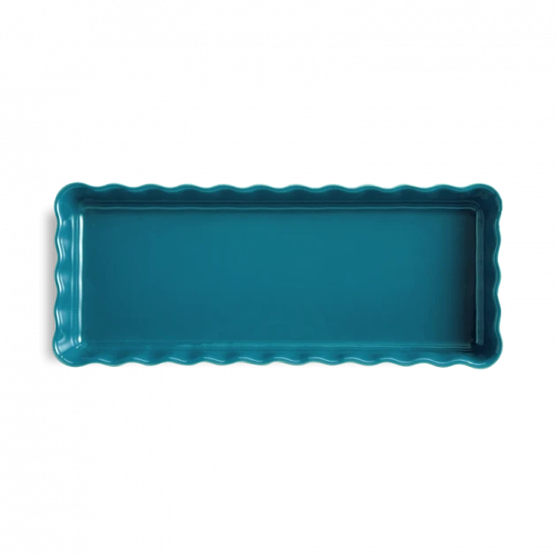 Le bleu Calanque associé au format rectangulaire de ce plat à tarte offre un esthétique moderne et original.