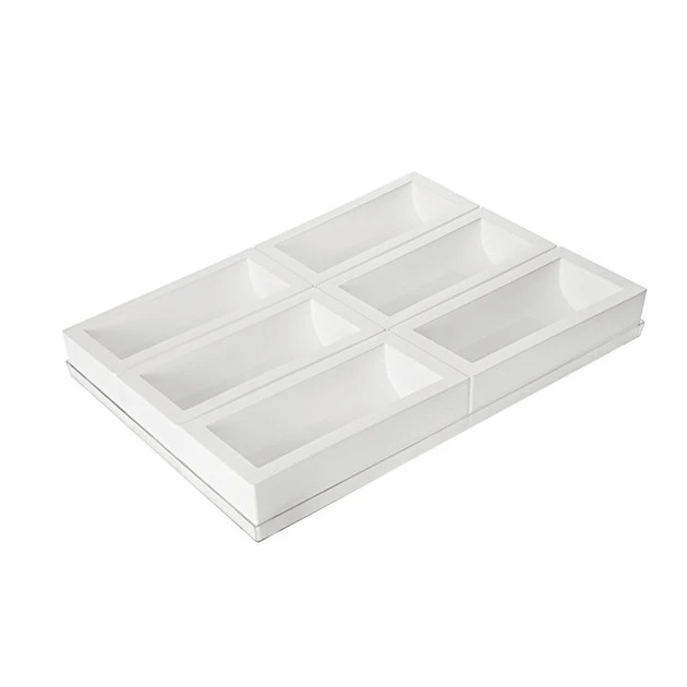 Pour NoĂ«l ou tout autre occasion, rĂ©alisez des mini bĂ»ches avec un moule Ă bĂ»che en silicone. Simple d’utilisation le Moule silicone 6 bĂ»ches Silikomart vous permet de confectionnez 6 piĂšces identiques de 250x90x70 mm. Ce moule Silikomart s’adresse aussi bien Ă des professionnels qu’Ă des particuliers. EntiĂšrement composĂ© de silicone, il supporte de larges tempĂ©ratures, ce qui vous permet de le placer au four, au micro-onde, au rĂ©frigĂ©rateur ou au congĂ©lateur. Vous pourrez donc rĂ©aliser des desserts glacĂ©s et des desserts avec inserts avec ce moule silicone.Â