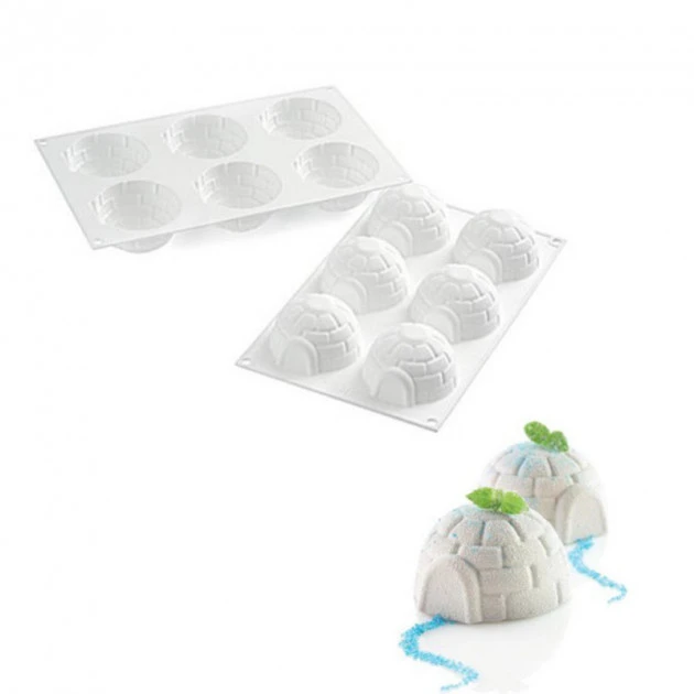 L’hiver débarque dans votre assiette avec ce Moule Silicone Igloos. Réalisez facilement 6 igloos individuels au réalisme parfait grâce aux détails du moule silicone Silikomart Professional.