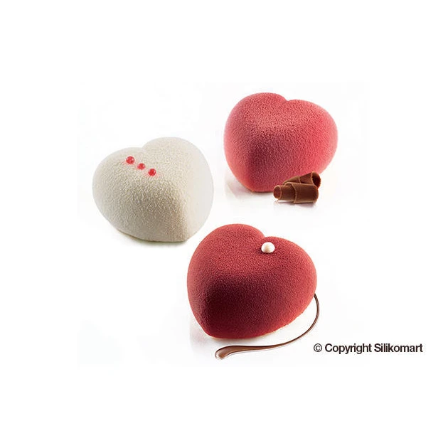CĂ©lĂ©brez l’amour et la passion en compagnie de votre Ăąme soeur, de vos amis ou de votre famille en dĂ©gustant de superbes coeurs rouges ! GrĂące au Moule Silicone 8 Coeurs BombĂ©s 6,35 x 6,5 cm 100ml SilikoMart Professional, vous aurez l’opportunitĂ© de rĂ©aliser 8 coeurs, inserts ou dĂ©cors Ă la contenance de 100 ml. Le moule silicone possĂšde une jolie forme arrondie et bombĂ©e ! A l’aide d’une poche Ă douilles, remplissez votre moule coeur de mousse ou de crĂšme faite de vos propres mains et laissez refroidir le tout pour parvenir Ă un entremets glacĂ© aussi beau visuellement que gustativement. Ce moule silicone coeur se caractĂ©rise par sa rĂ©sistance Ă des tempĂ©ratures extrĂȘmes (-60°C Ă 230°C). Il est donc compatible au four, au micro-ondes et au rĂ©frigĂ©rateur ce qui vous permet de crĂ©er des desserts froids comme chauds. A vous de rĂ©aliser une recette cuite ou une recette composĂ©e de glace, mousse ou gelĂ©e.