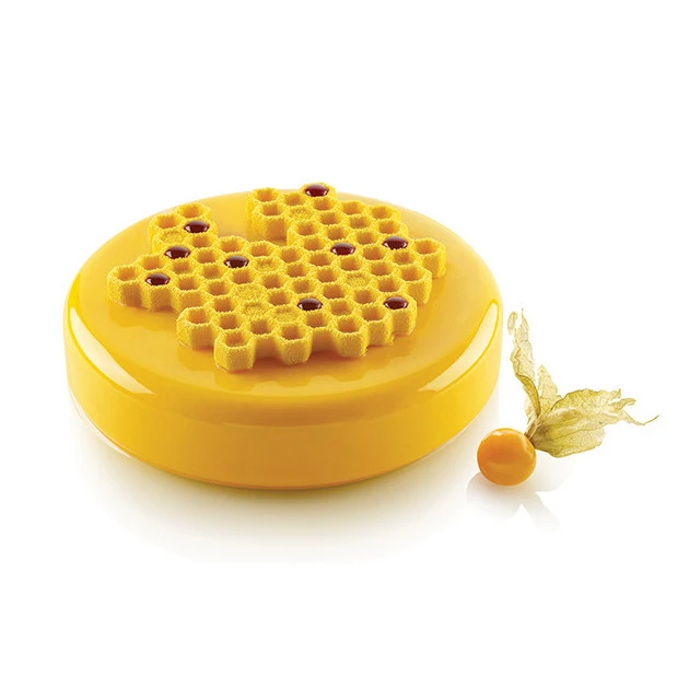 Habillez vos entremets en y ajoutant une touche gourmande grâce à ce Moule Silicone Décor Miel. Comprenant 2 empreintes, ce Moule Décor Silikomart Professional vous permettra de transformer votre tarte de plus de 14 cm de diamètre en une véritable ruche.