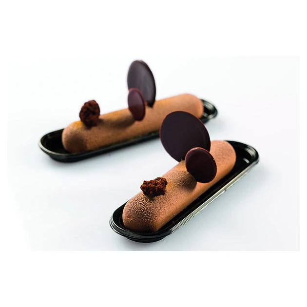 RĂ©alisez des desserts individuels aussi beaux que bons Ă l’aide du Moule Silicone Fingers Silikomart Professional. Vendu Ă l’unitĂ©, il mesure 300 x 175 mm et dispose de 8 empreintes de 130.5 x 25 x 27 mm. Le moule silicone Fingers Silikomart s’accompagne d’un dĂ©coupoir et de dix coupelles rĂ©utilisables en plastique. Ces accessoires seront parfaits pour dĂ©couper un biscuit ou un croustillant Ă la bonne taille et de façon propre, puis de leur offrir une belle prĂ©sentation.Â