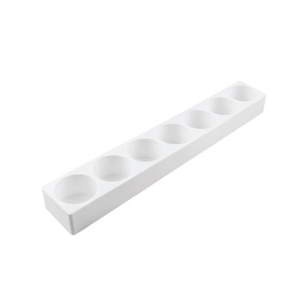 Avec ce moule silicone 7 empreintes réalisez trÚs facilement 7 cylindres parfaitement réguliers. Ce moule silicone MultiFlex est conçu pour vous faciliter la tùche lors de la réalisation de vos desserts individuels. La qualité et les finitions du moule SilikoMart vous assurent un démoulage facile de vos cylindres sans avoir à les reprendre ou à les égaliser par la suite.